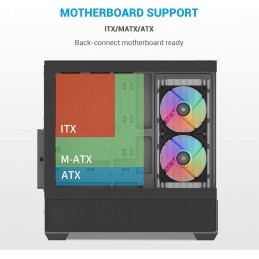 Spaziose strutture interne e back-connect: supporta schede madri ATX, Micro-ATX e ITX con ampio spazio per GPU da 410 mm e dissipatori CPU da 181 mm, rendendolo ideale per configurazioni di gioco o workstation ad alta potenza