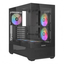 Il case SAMA V40 vanta due pannelli in vetro temperato, offrendo una splendida vista panoramica a 270° che mette in mostra splendidamente i componenti interni del sistema.