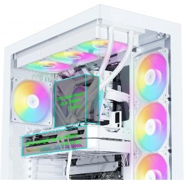 Il SAMA V50 è dotato di quattro ventole ARGB PWM preinstallate, che assicurano un raffreddamento efficiente e silenzioso fin da subito. Queste ventole, oltre a garantire un flusso d’aria ottimale, aggiungono un tocco estetico grazie all’illuminazione ARGB personalizzabile. Per chi desidera un raffreddamento ancora più avanzato, il case supporta radiatori da 360 mm sia sulla parte superiore che laterale, offrendo flessibilità nella scelta delle soluzioni di raffreddamento a liquido. Con uno spazio di raffreddamento CPU fino a 181 mm, il V50 è compatibile con una vasta gamma di dissipatori ad aria, rendendolo adatto anche per configurazioni ad alte prestazioni. La gestione termica è ulteriormente migliorata dalla struttura interna, progettata per favorire la circolazione dell’aria e ridurre i punti caldi.