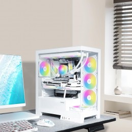 Case DARK CAVE - Gaming Mini Tower, mATX, 4x12cm ARGB fan, 2xUSB3, Type-C, Side & Front Panel Temp Glass, White Edition