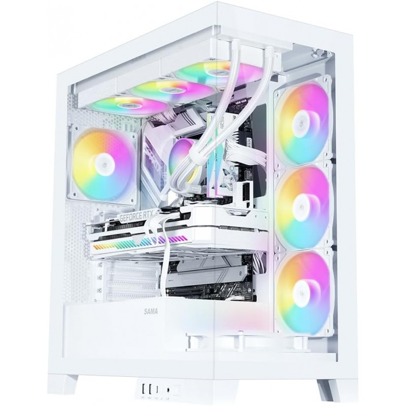 Sama Case V50, il case mid-tower con vetro temperato. Offre ampio spazio, raffreddamento ottimale con 4 ventole ARGB e supporto radiatore da 360mm. Ideale per configurazioni ATX e gestione dei cavi