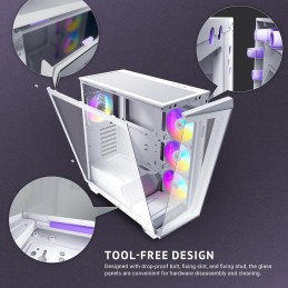 Case DARK CAVE - Gaming Mini Tower, mATX, 4x12cm ARGB fan, 2xUSB3, Type-C, Side & Front Panel Temp Glass, White Edition