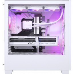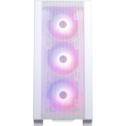 Elegante midi tower in bianco, porte laterali in vetro temperato, illuminazione RGB LED indirizzabile, spazio per 2x radiatore da 360 mm, massimo radiatore da 420 mm, schede grafiche lunghe fino a 435 mm, grande supporto e tre ventole preinstallate