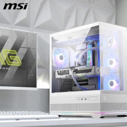 Approfitta di un case mid-tower efficiente e ad alte prestazioni con MSI MAG PANO 100R PZ. Dotato di vetro temperato sia sulla parte frontale che sui lati, è la vetrina ideale per i tuoi componenti. Dotato di quattro ventole ARGB di serie, è anche compatibile con il raffreddamento a liquido.