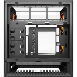 ASUS ROG Hyperion GR701 è un case per PC large-tower top di gamma dotato di sistema Aura Sync RGB (pannello frontale retroilluminato), 4 ventole PWM da 140 mm (di cui 3 anteriori), pannelli laterali in vetro temperato e uno chassis in alluminio di alta qualità.