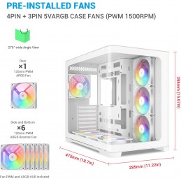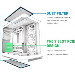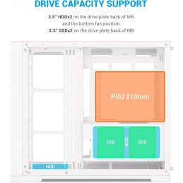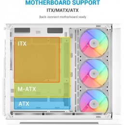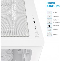 Mid-Tower, ITX/Micro-ATX/ATX, 2x 3.5", 3x 2.5", 7x expansion slots, 2x USB3.0, 1x Gen2 Type-C, 1x Audio/Mic, 440 × 285 × 399 mm, white