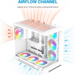 Il cuore del SAMA V60 risiede nel suo sistema di raffreddamento avanzato. Le 7 ventole ARGB PWM preinstallate sono configurate per garantire un flusso d’aria potente e uniforme attraverso l’intero case. Tre ventole sono posizionate nella parte inferiore per aspirare aria fresca, tre sul lato per un raffreddamento diretto dei componenti principali, e una sul retro per espellere l’aria calda. L’hub per ventole incluso semplifica la gestione e il controllo della velocità delle ventole, permettendo di bilanciare prestazioni e silenziosità. La compatibilità con radiatori AIO fino a 360mm nella parte superiore, inferiore o laterale offre ulteriori opzioni di raffreddamento per i sistemi più esigenti. Questo sistema di raffreddamento completo assicura che i componenti interni rimangano freschi anche durante le sessioni di gaming più intense o i carichi di lavoro più pesanti. Se sei un appassionato di simulatori di guida, un sistema di raffreddamento efficiente è essenziale per mantenere le prestazioni ottimali del tuo PC.