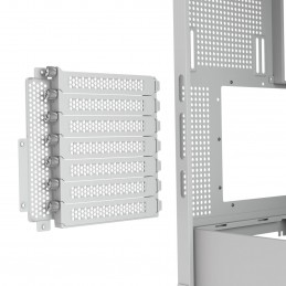 Il layout interno supporta schede madri fino al formato E-ATX e garantisce un eccellente flusso d’aria grazie alla possibilità di installare fino a 9 ventole. Il case viene fornito con due ventole ARGB da 140 mm installate lateralmente e una ventola ARGB da 120 mm nella parte inferiore, nella versione RGB. È presente un hub integrato per la gestione simultanea di ventole PWM e illuminazione ARGB, rendendo l’installazione più ordinata e semplice.