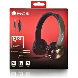 NGS MSX11 PRO - Cuffie On-Ear con Microfono Flessibile, Conessione Jack da 3,5mm e Doppio Adattatore Jack per PC, 20 Hz, Nero
