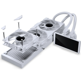 AIO 360mm con display LCD-IPS da 6" (1480×720, 60Hz), pompa 3.100 RPM, 3× ventole M25G2 D-RGB 2.000 RPM, base rame, tubi CIIR 400mm, compatibile Intel LGA1851/1700 e AMD AM5/AM4