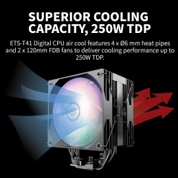 Superior Cooling Capacity (280W TDP)Dual-tower heatsink design2 x 120mm FDB Fans IncludedPWM Controlled Fan for Optimizes Airflow and Silent OperationSleek Low-Profile Status Display