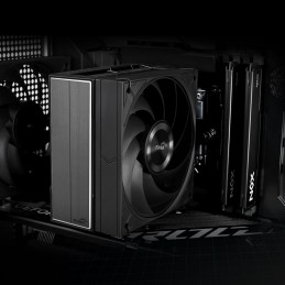 Vi presentiamo il SAMA A40, un elegante dissipatore completamente nero con parte superiore in metallo spazzolato, heatpipe a contatto diretto e una ventola ad anello guida da 120 mm per un raffreddamento efficiente e silenzioso in un design compatto.