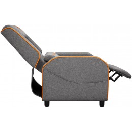 Il sistema reclinabile consente regolazioni multiple dello schienale, con inclinazione da posizione attiva fino a circa 160°, permettendo di passare facilmente da una postura di gioco a una completamente rilassata. Il poggiapiedi integrato e ribaltabile aumenta ulteriormente il livello di comfort.