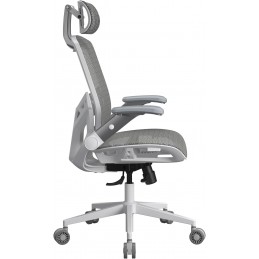 I braccioli 2D ribaltabili offrono regolazione in altezza e possibilità di essere sollevati per liberare spazio e avvicinare la sedia alla scrivania. Il sistema di inclinazione con smorzamento adattivo consente movimenti fluidi e controllati dello schienale, migliorando il comfort in fase di relax.
