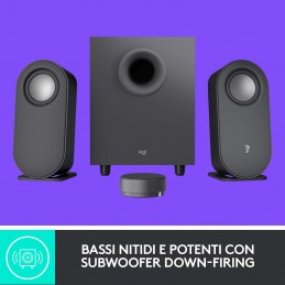 Multimedia Speakers Suono potente, bassi profondiSubwoofer frontale con cono di 13 cm per bassi ricchi e profondiUnità di controllo con fili per un facile accesso ai controlli di accensione e volume