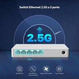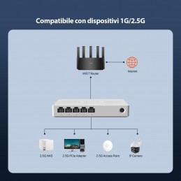 5 porte 10/100/1,000 Mbps, con auto-negoziazione e auto MDI / MDIXEstensione semplice della rete cablataDesign compatto per posizionamento flessibilePlug and play: nessuna configurazione richiestaGreen Ethernet: risparmio energetico fino all'82%